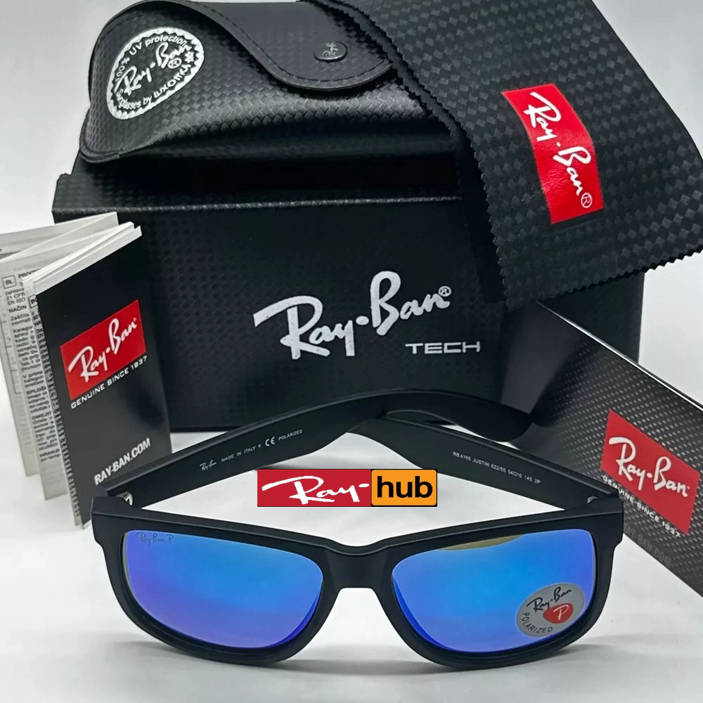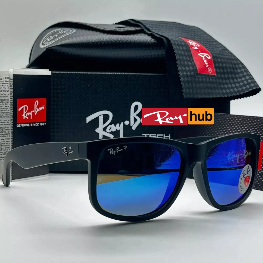 🌿 Eleva tu estilo con los Ray-Ban Linea Justin: Marco Black y Lentes Azul espejados🌞